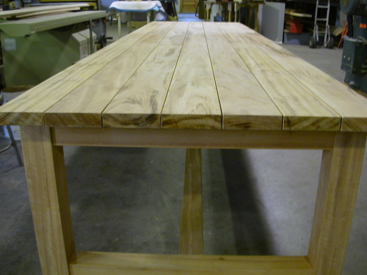 This table, shown in tigerwood, can also be made in teak. It can be left outside to weather to a light gray over time. it can be made in any length. Benches also available.